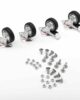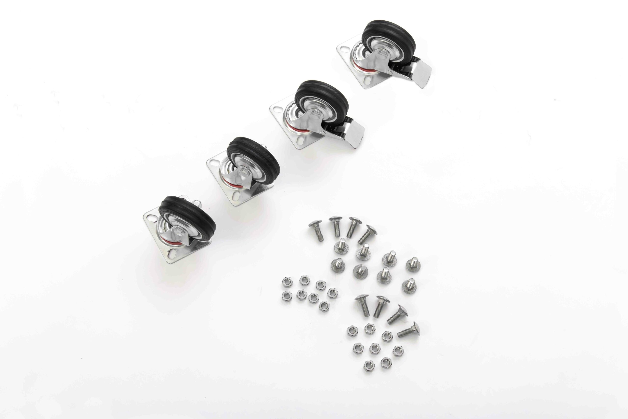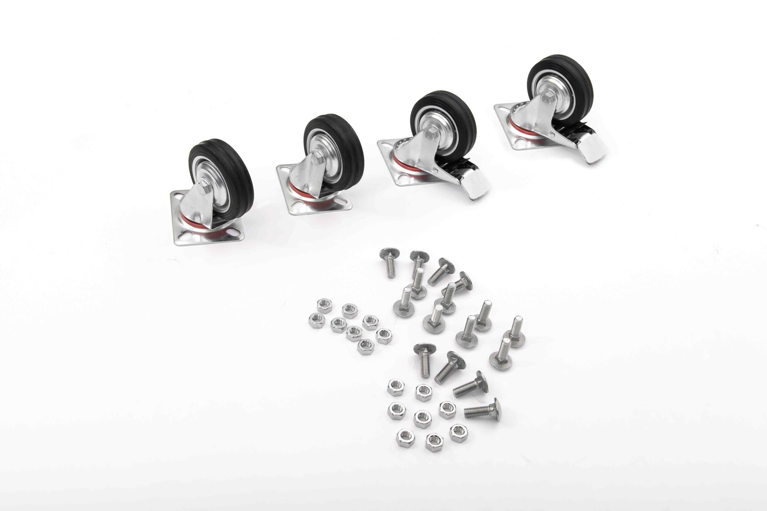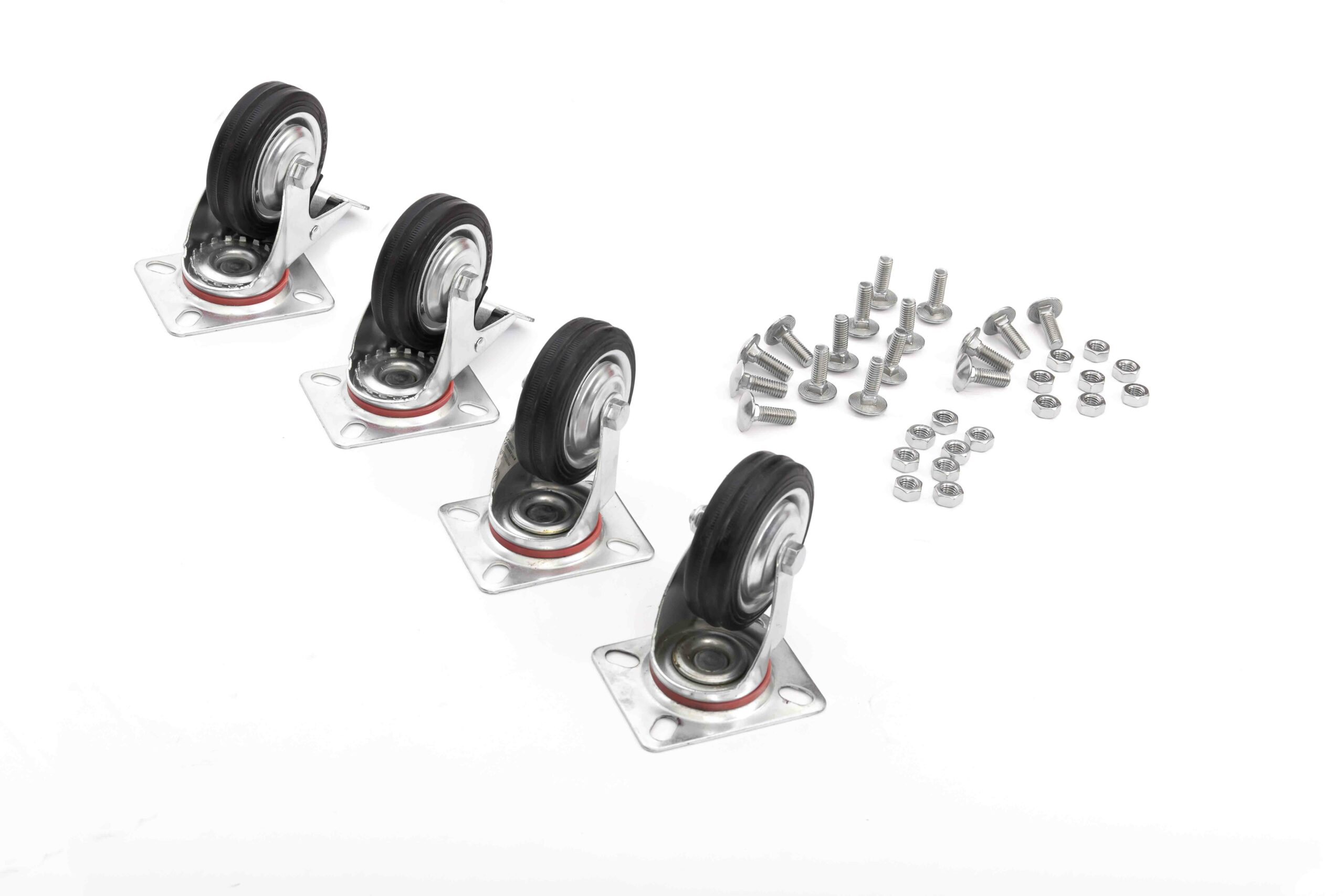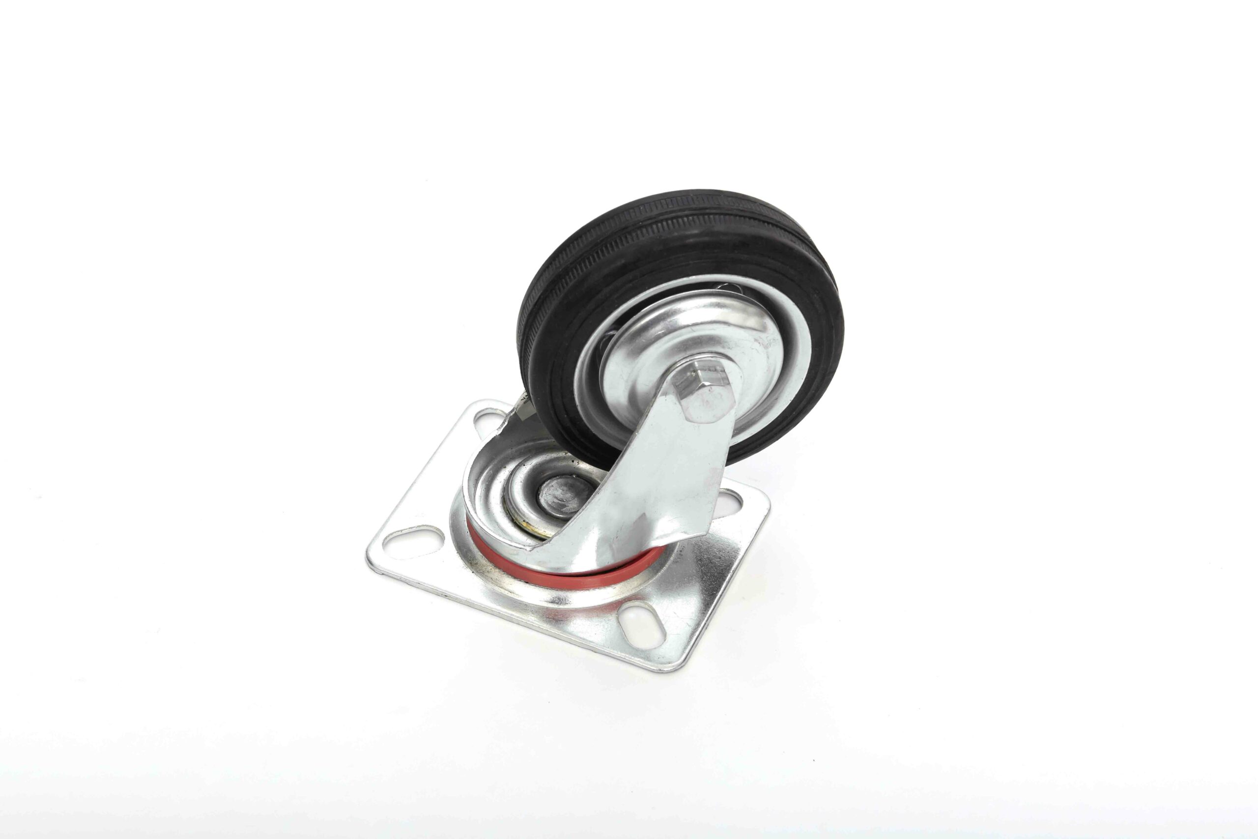 Le ruote girevoli per carrelli sono in gomma nere e complete di supporto girevole con 4 fori per la distribuzione del carico. Sono realizzate in mescola di prima scelta e le materie prime italiane sono selezionate per la loro qualità, così come le operazioni di stampaggio.