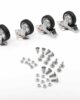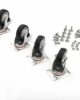 Le ruote girevoli per carrelli sono in gomma nere e complete di supporto girevole con 4 fori per la distribuzione del carico. Sono realizzate in mescola di prima scelta e le materie prime italiane sono selezionate per la loro qualità, così come le operazioni di stampaggio.